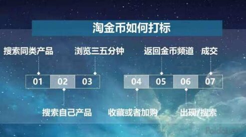 淘金币打标要先去搜索类目的商品,再搜索自己的产品,再去淘金币频道找到自己产品下单;