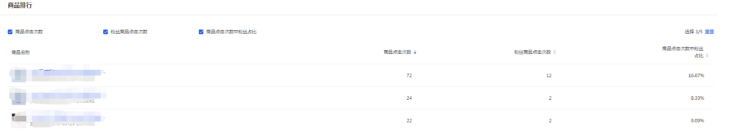 在商品排行里我们可以看到商品的点击次数这项指标。