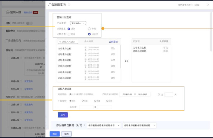 根据消费者的诉求,商家在前站期的目标是曝光量,所以人群可以宽泛一点的,蓄水期的目标是进店关注店铺,所以人群策略是非店铺人群+潜客,预热期目标是加购、收藏、关注店铺,所以人群定向是潜客+新客。
