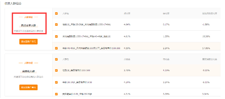 4·在就是根据人群来优化我们的点击率,以前我们还的测试,用自定义来测试我们的人群,但是现在系统直接有推荐,别瞧不起系统推荐,网店代运营觉得还是比较准的!当然,你如果是老车手,你精细化的优化,根据各方面的数据提高,肯定是先测试自定义人群比较好,但是在刚上车的时候呢,没有点击没有基础权重的时候,选择系统推荐的人群,我们是不是可以先一步知道我们比较精准的人群呢?这个也是在流量解析里面:
