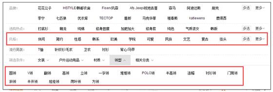 我们看这些,这些都是属性层面的,比如风格和领型这两个,不同风格的衣服面对的目标顾客群是不一样的,不同的领型面对的目标顾客群也是不一样的。比如说,喜欢性感风格的消费者可能对民族风的完全是不感冒的;一直穿翻领的消费者可能对于圆领是不感冒的。