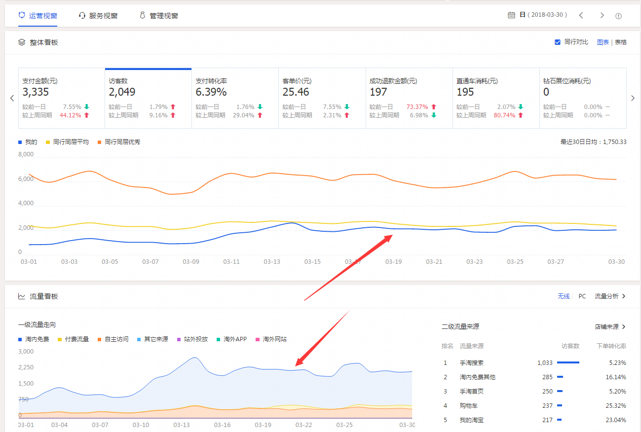 找到问题自然就有解决方式,目前目的无非就是针对精准人群进行优化,然后影响店铺人群标签,使我们引流变得更为精准,接下来自然搜索流量访客不变,但是转化提升,支付金额提升后,我们层级壁就会破除。